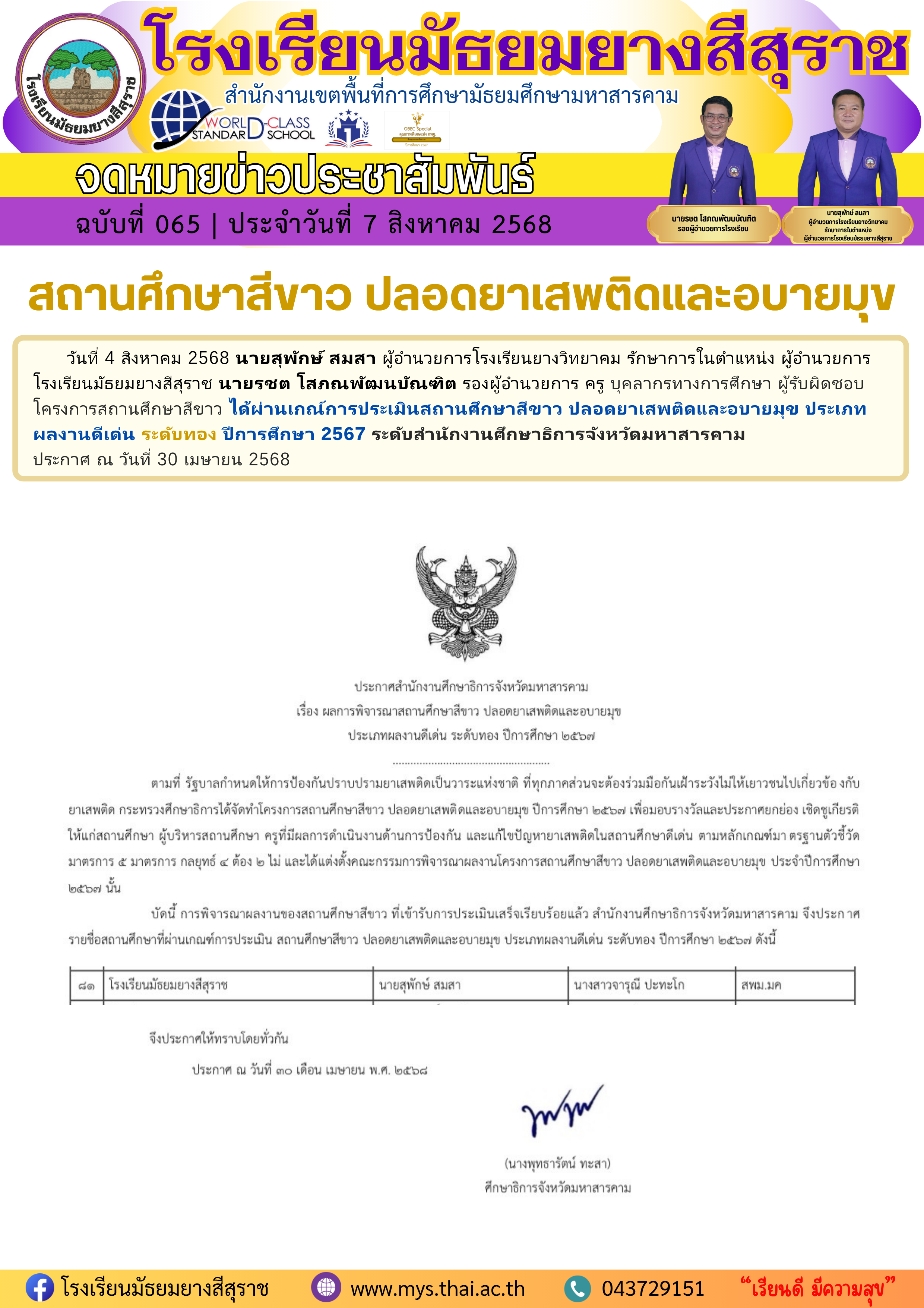 สถานศึกษาสีขาว ปลอดยาเสพติดและอบายมุข