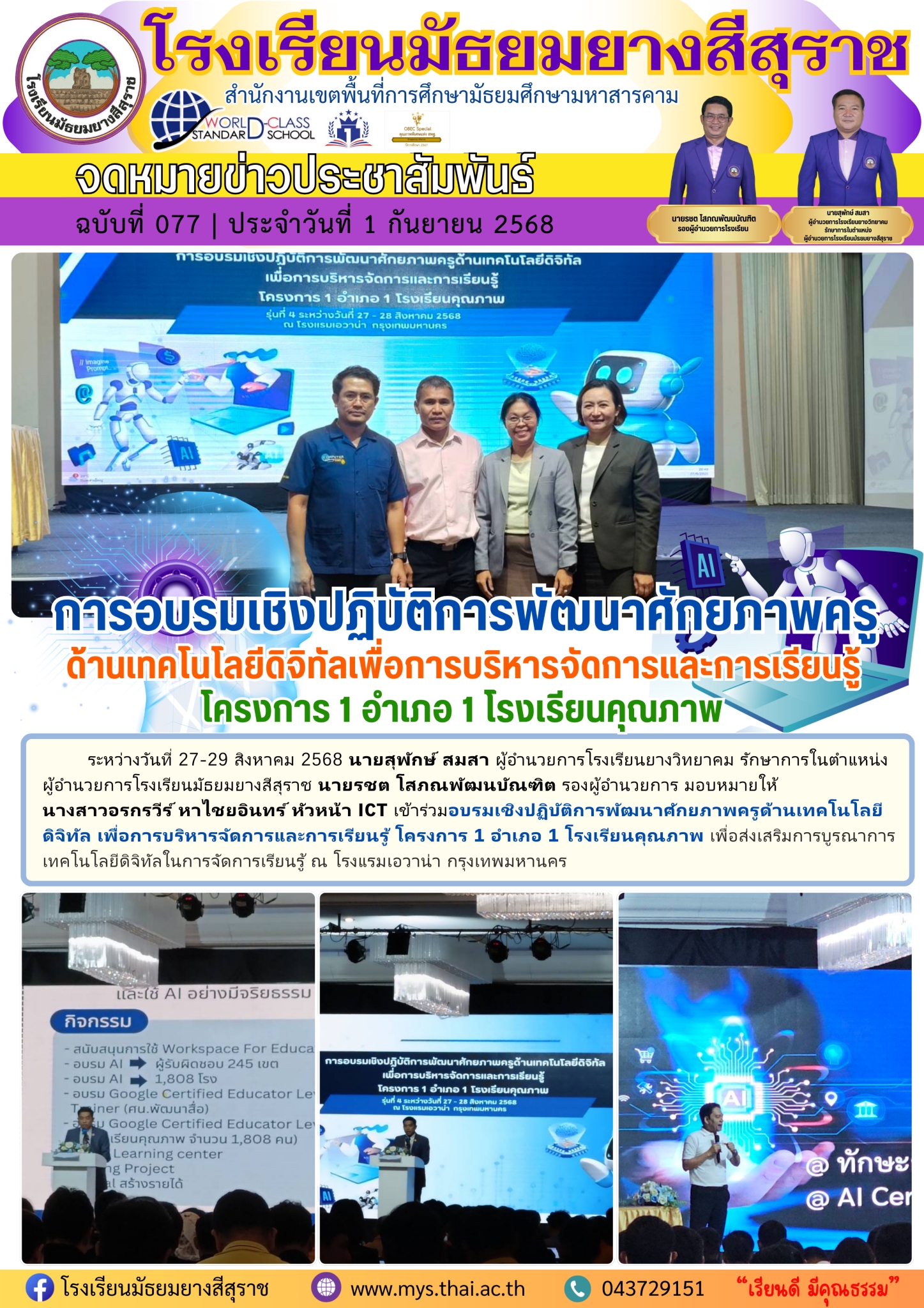 การอบรมเชิงปฏิบัติการพัฒนาศักยภาพครูด้านเทคโนโลยีดิจิทัลเพื่อการบริหารจัดการและการเรียนรู้