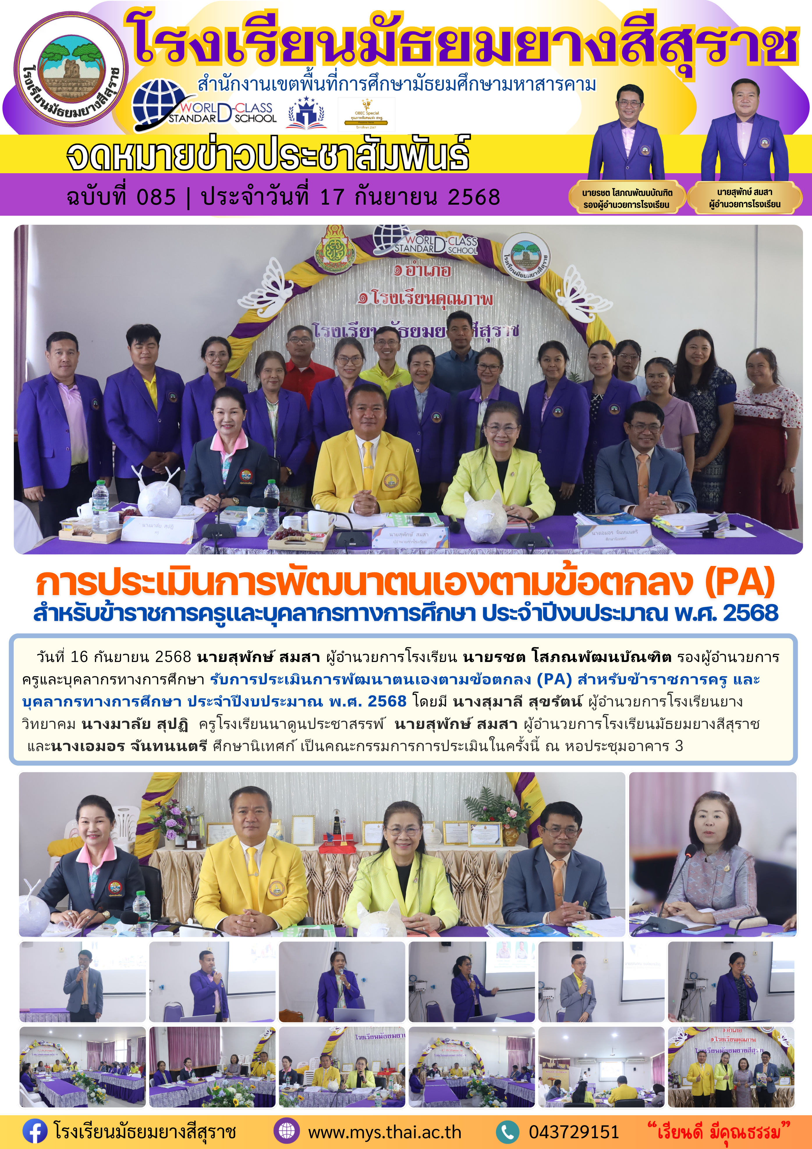การประเมินการพัฒนาตนเองตามข้อตกลง (PA) สำหรับข้าราชการครู และบุคลากรทางการศึกษา ประจำปีงบประมาณ พ.ศ. 2568