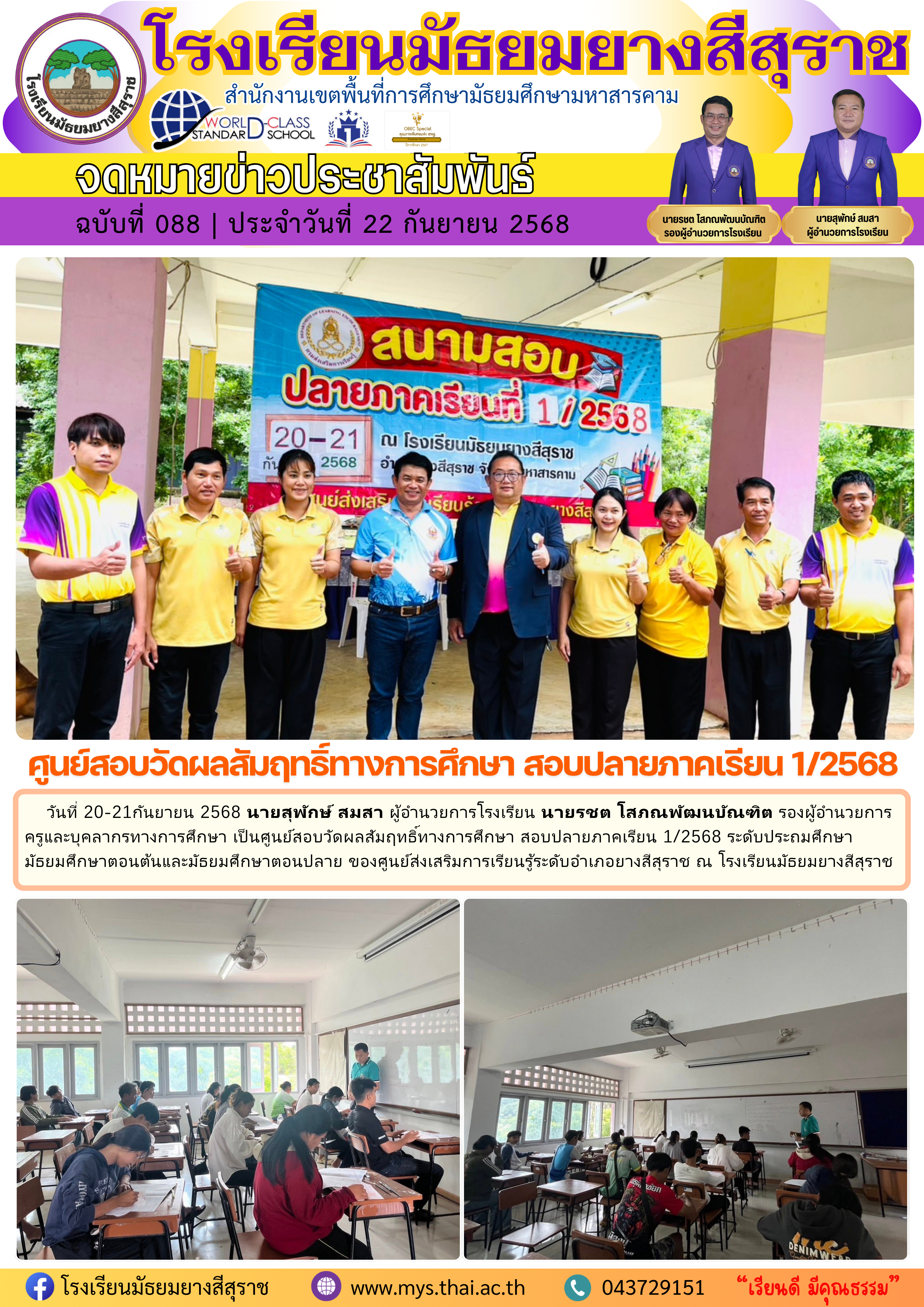 ศูนย์สอบวัดผลสัมฤทธิ์ทางการศึกษา สอบปลายภาคเรียน 1/2568