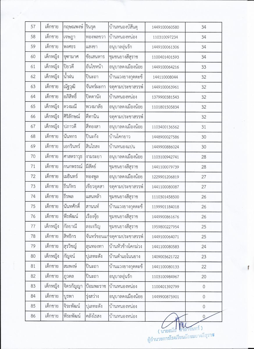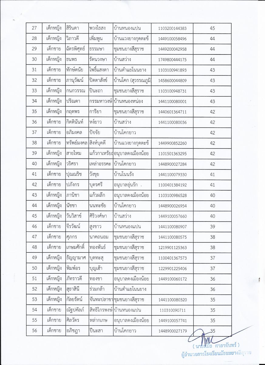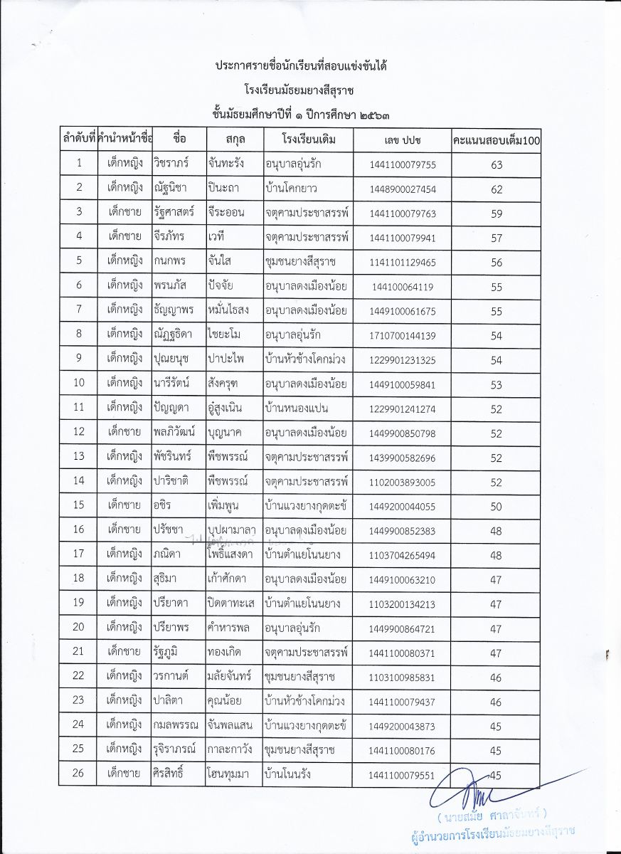 ประกาศผลสอบนักเรียนชั้นมัธยมศึกษาปีที่ 1