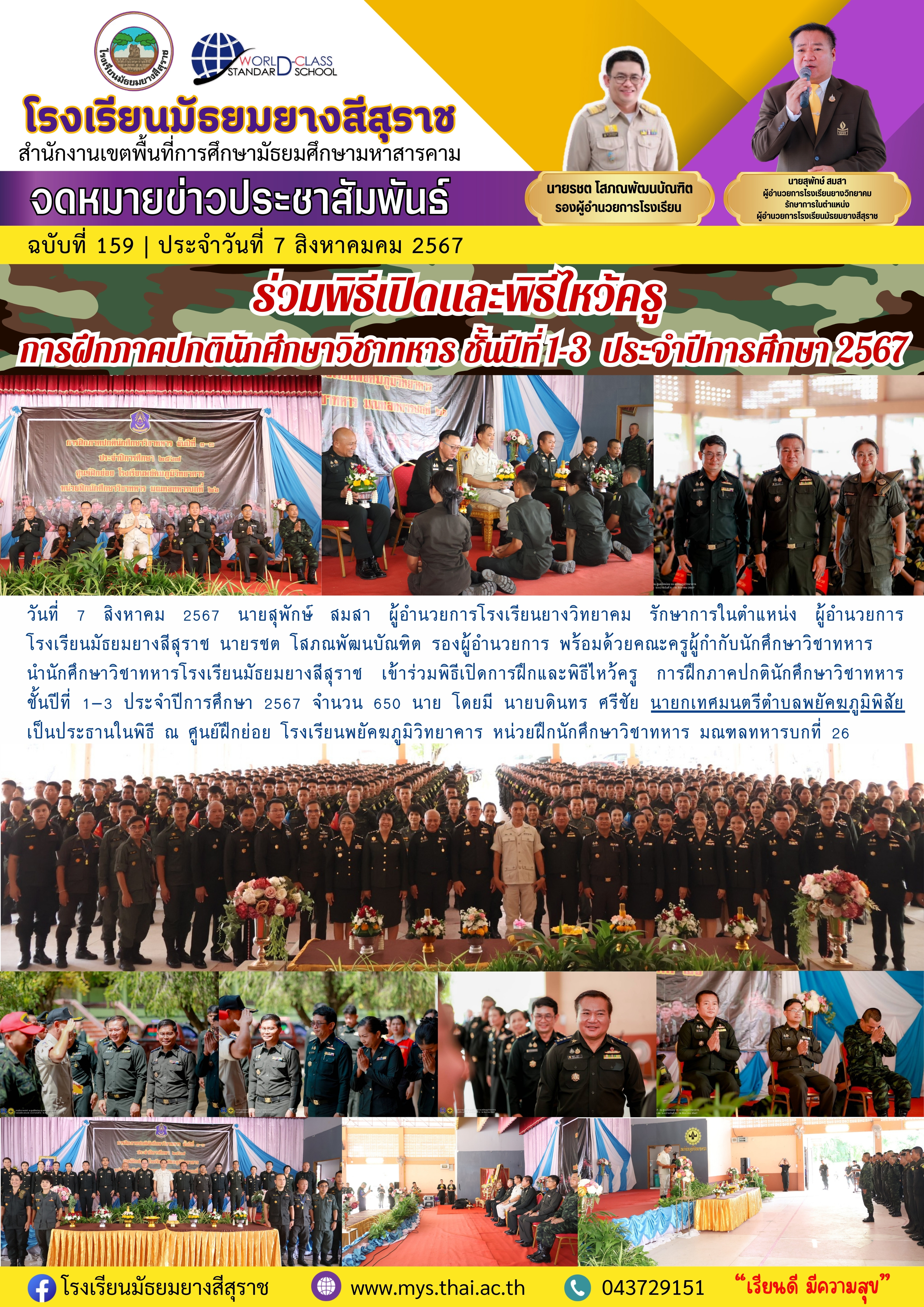 ร่วมพิธีเปิดและพิธีไหว้ครูการฝึกภาคปกตินักศึกษาวิชาทหาร ชั้นปีที่ 1-3 ประจำปีการศึกษา 2567