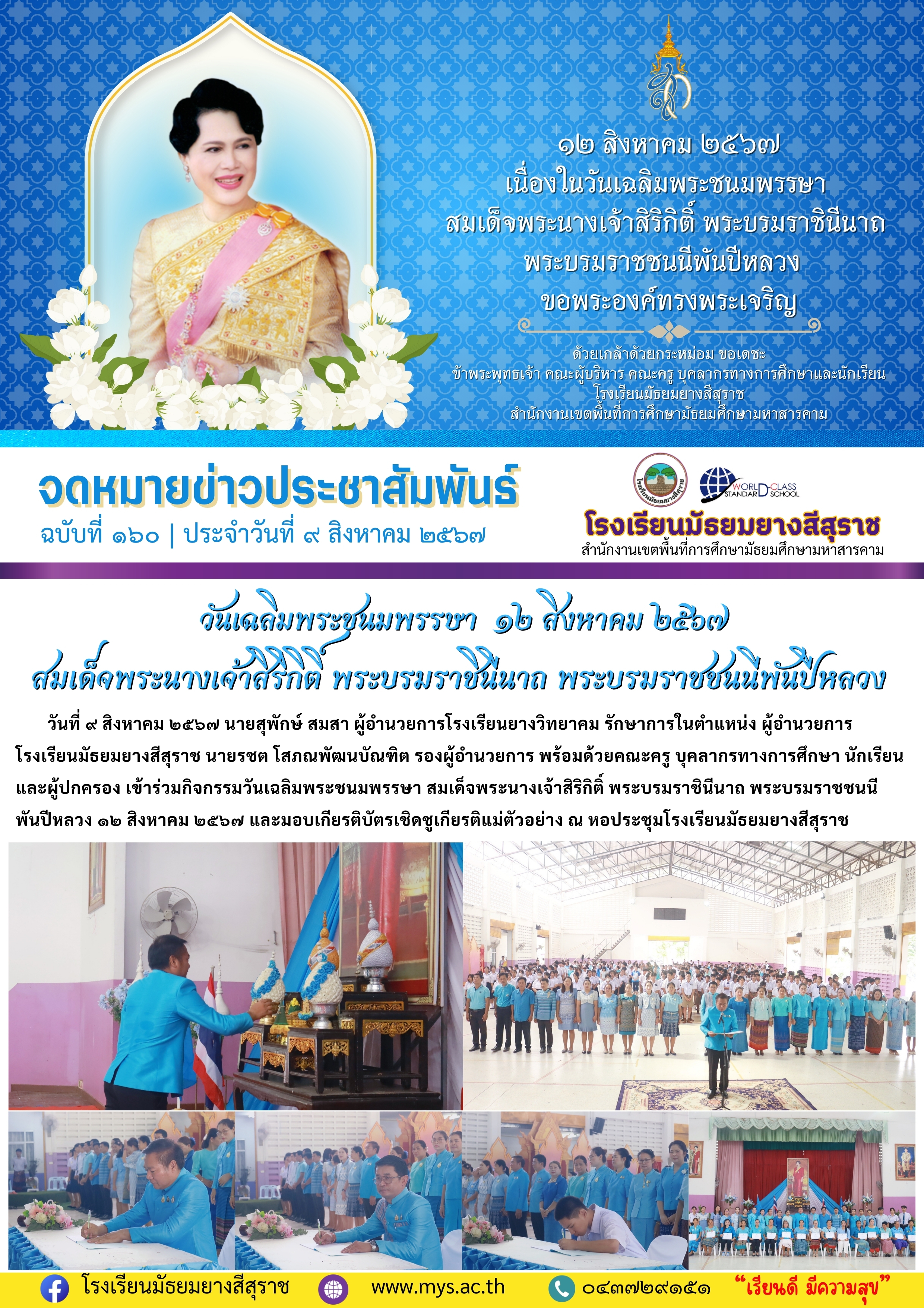 วันเฉลิมพระชนมพรรษา 12 สิงหาคม 2567 ณ โรงเรียนมัธยมยางสีสุราช
