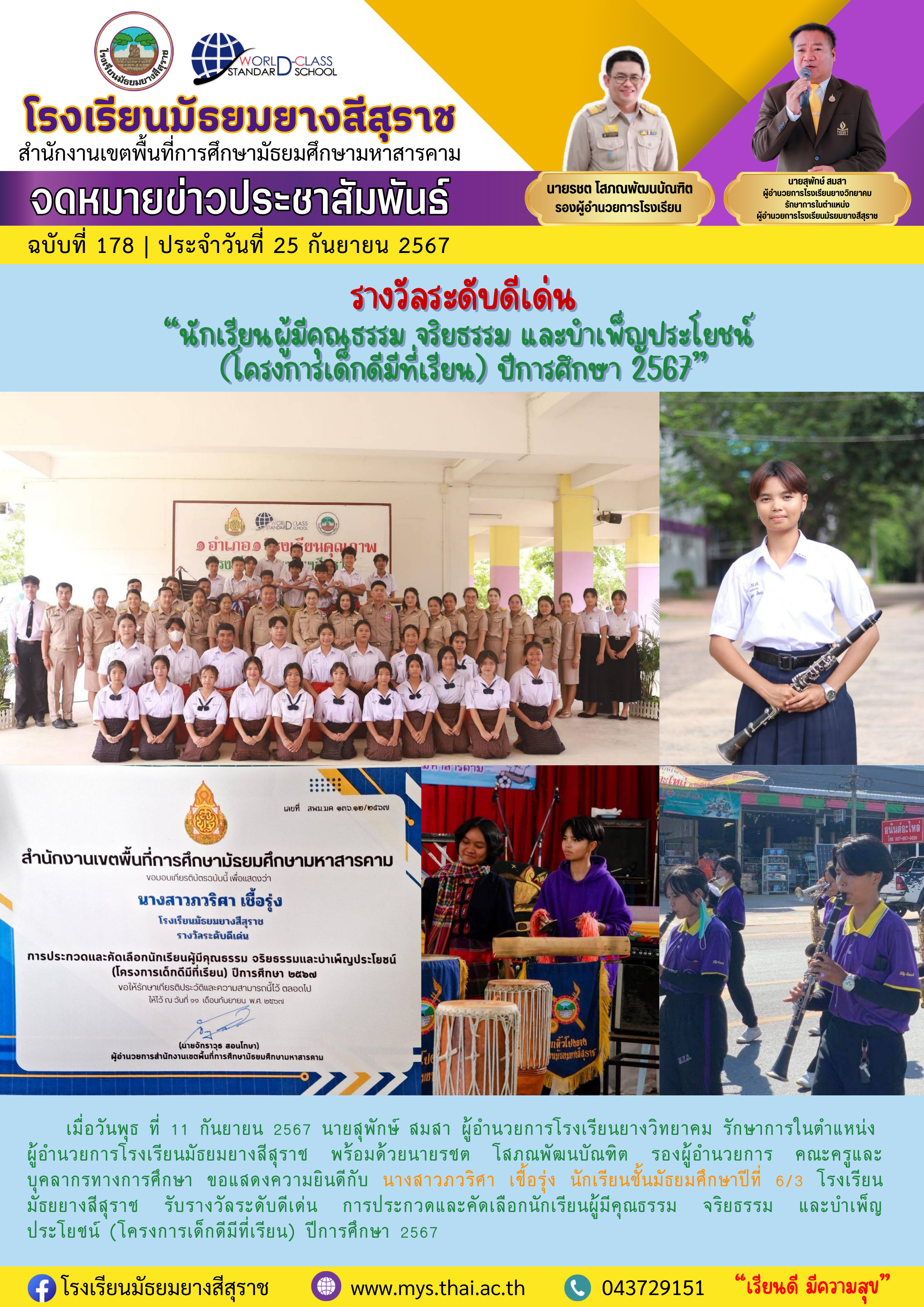 รางวัลระดับดีเด่น ?นักเรียนผู้มีคุณธรรม จริยธรรม และบำเพ็ญประโยชน์ (โครงการเด็กดีมีที่เรียน) ปีการศึกษา 2567?