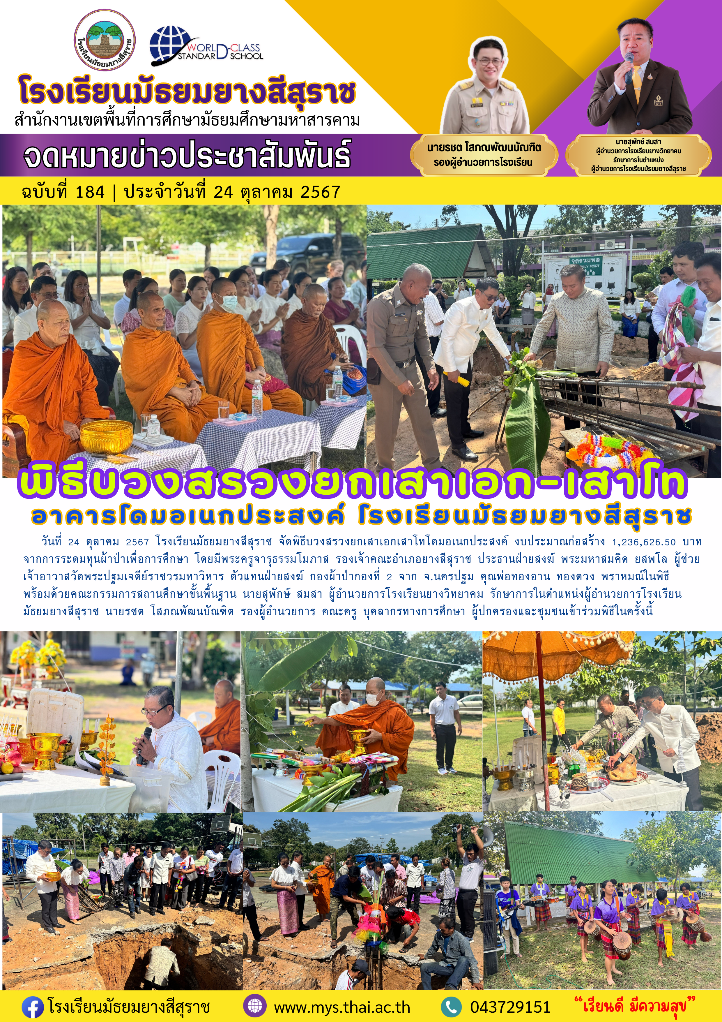 พิธีบวงสรวงยกเสาเอก-เสาโท อาคารโดมอเนกประสงค์ โรงเรียนมัธยมยางสีสุราช