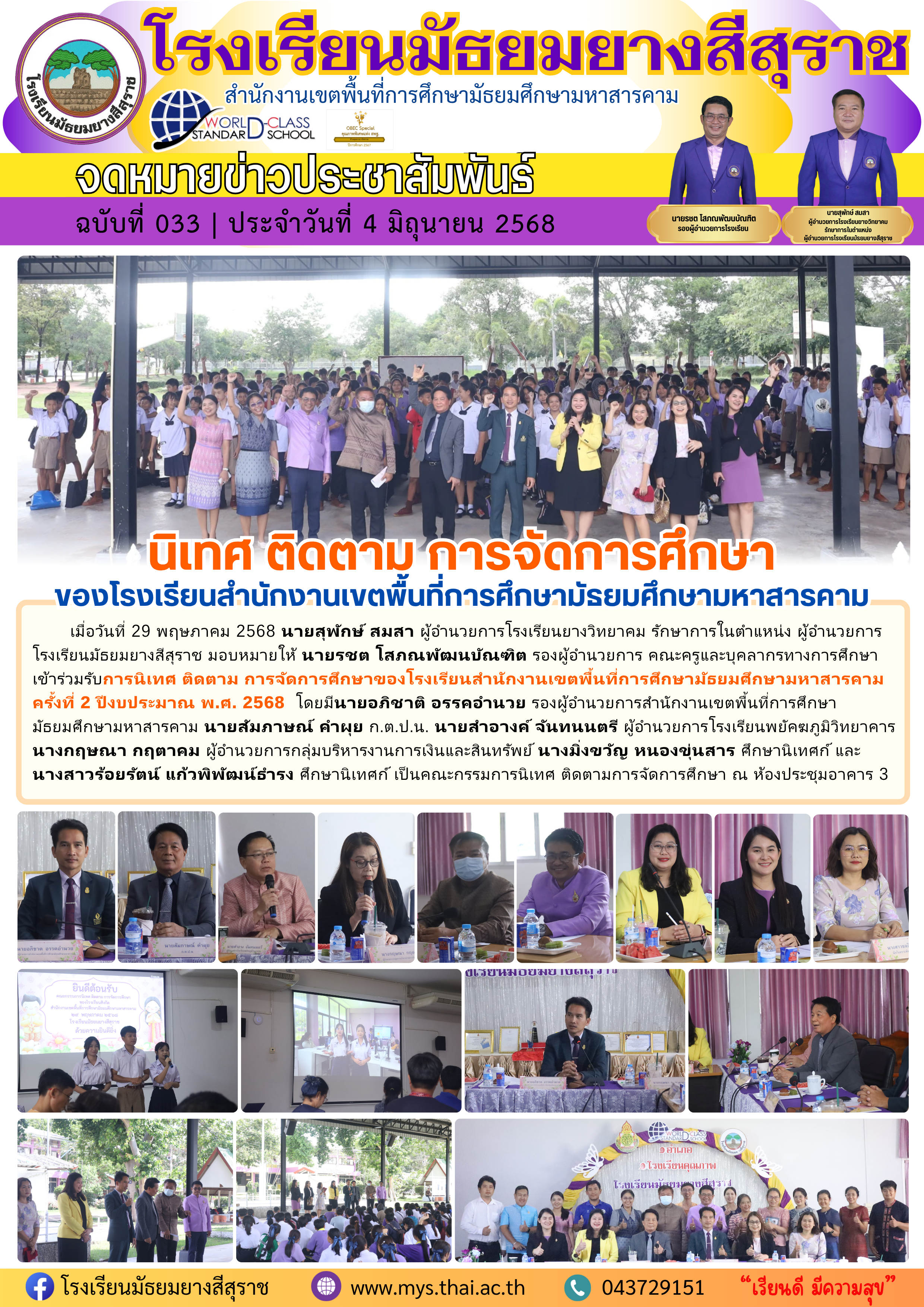 นิเทศ ติดตาม การจัดการศึกษา ของโรงเรียนสำนักงานเขตพื้นที่การศึกษามัธยมศึกษามหาสารคาม