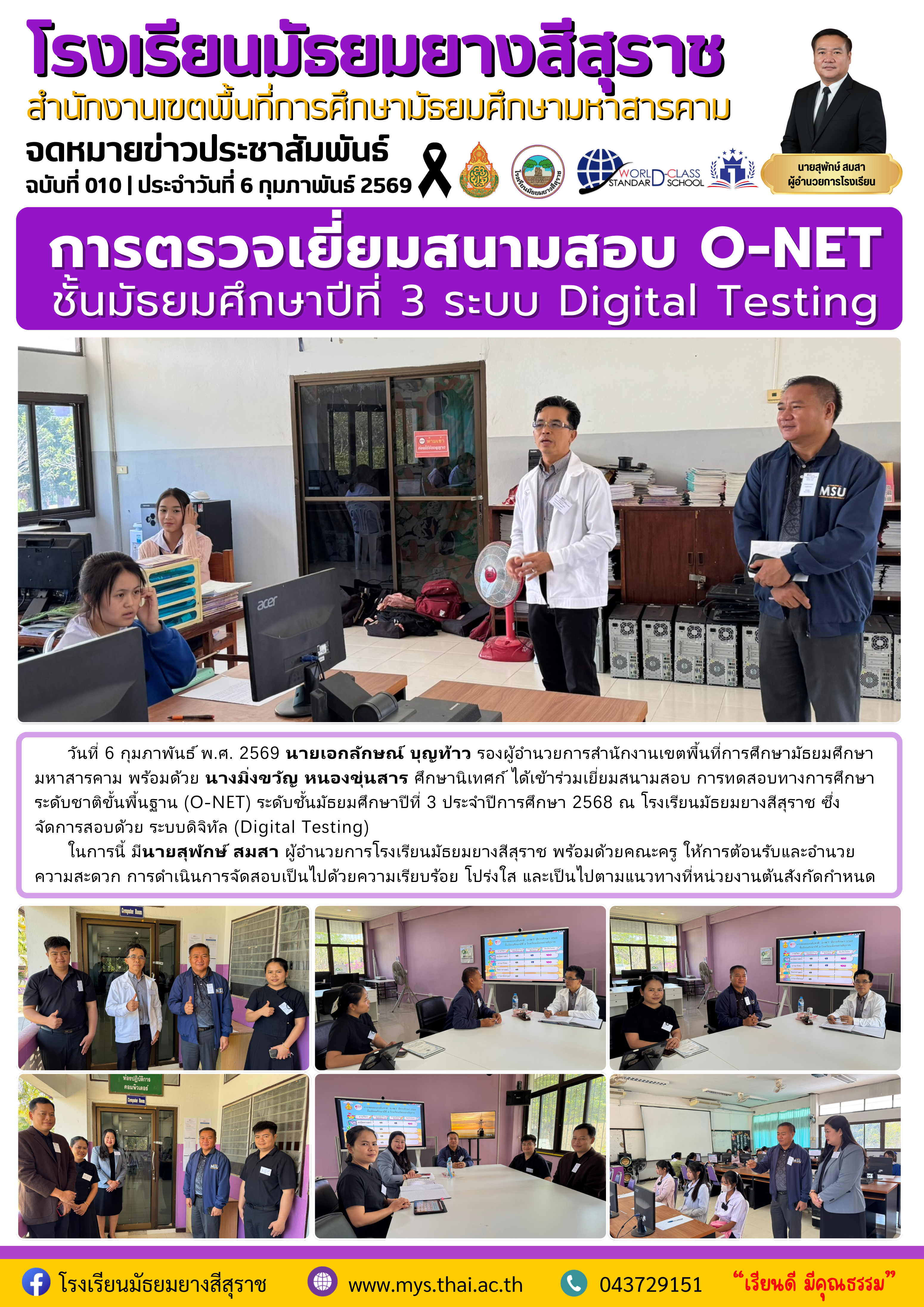 การตรวจเยี่ยมสนามสอบ O-NET ชั้นมัธยมศึกษาปีที่ 3 ระบบ Digital Testing