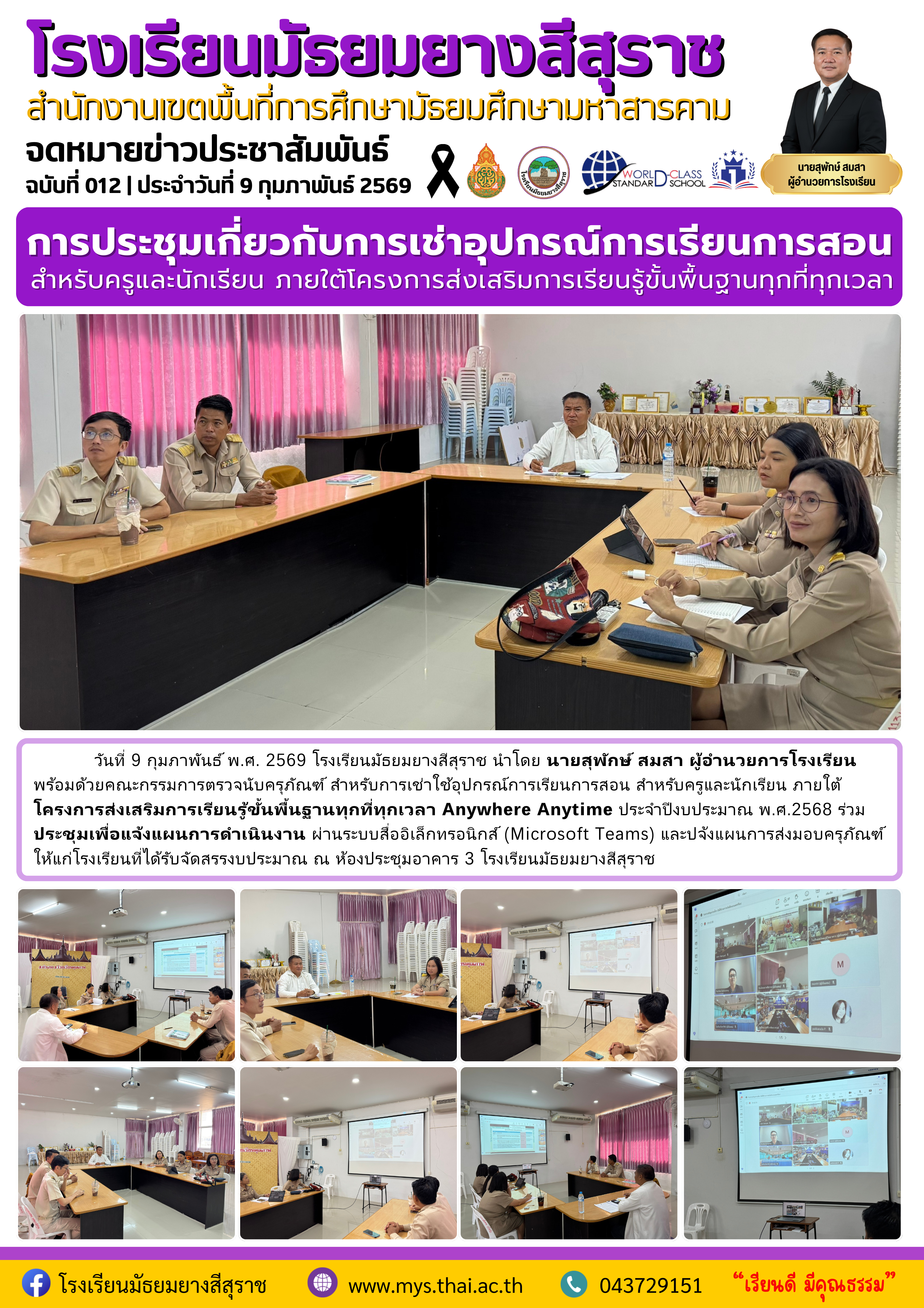 การประชุมเกี่ยวกับการเช่าอุปกรณ์การเรียนการสอน สำหรับครูและนักเรียน ภายใต้โครงการส่งเสริมการเรียนรู้ขั้นพื้นฐานทุกที่ทุกเวลา